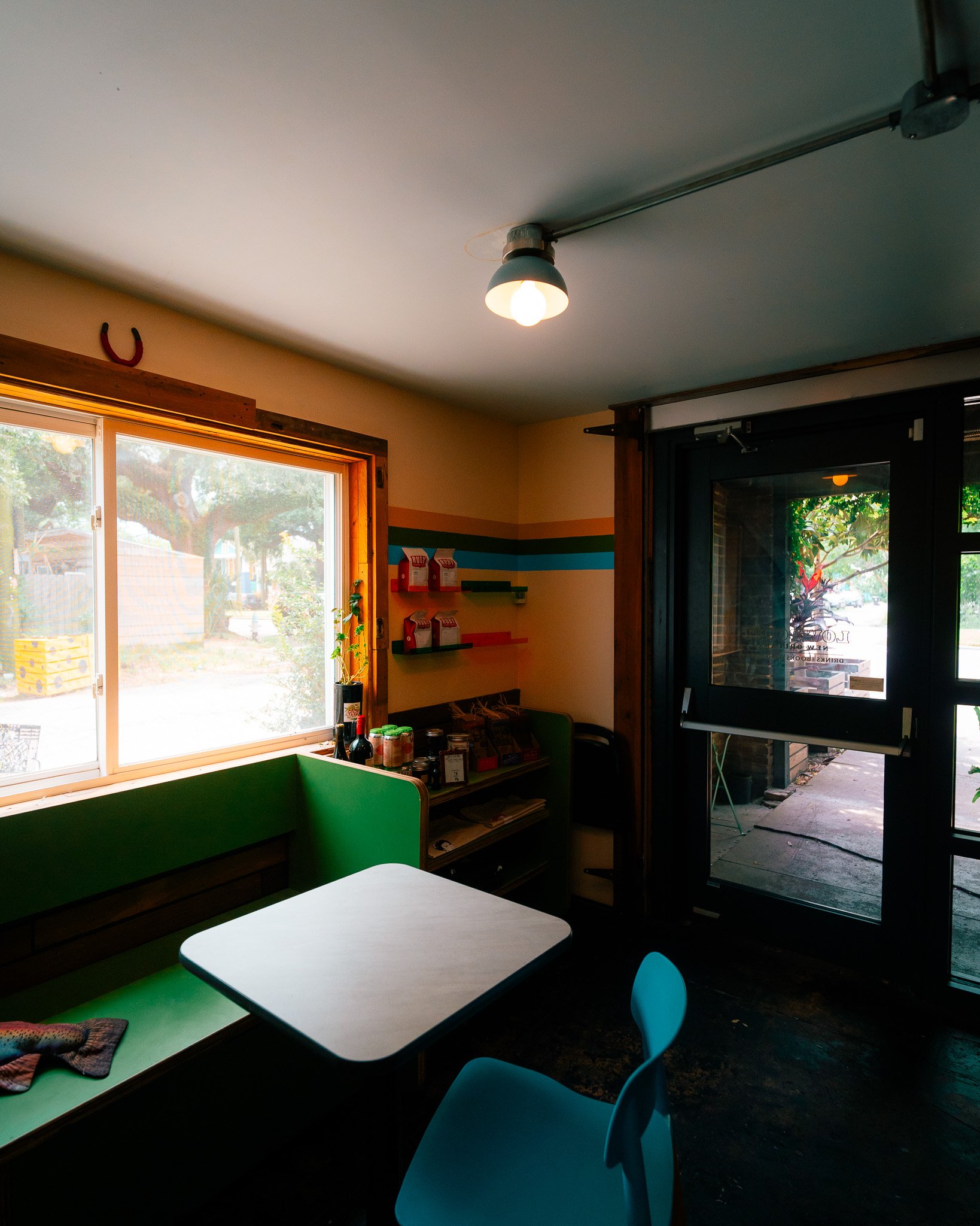 A quaint space with limited seating, but beautiful floor-to-ceiling windows for exceptional lighting.
